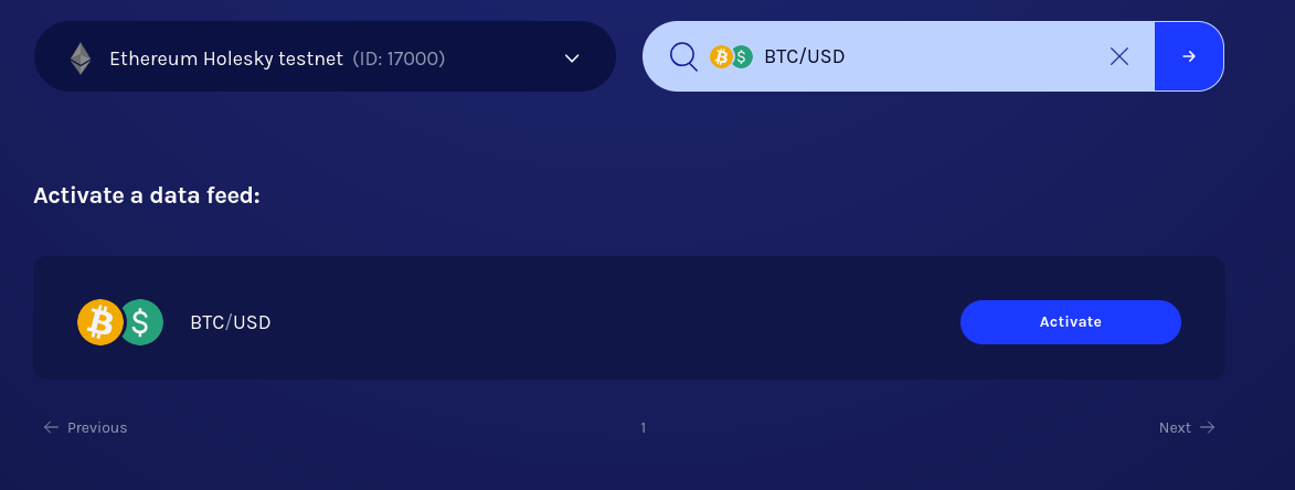 If you pick a data feed that is already active on the network, you will be taken to the data feed page directly. Otherwise, you will be taken to the activation page first. To experience the entire flow, we recommend picking a data feed that is not active.